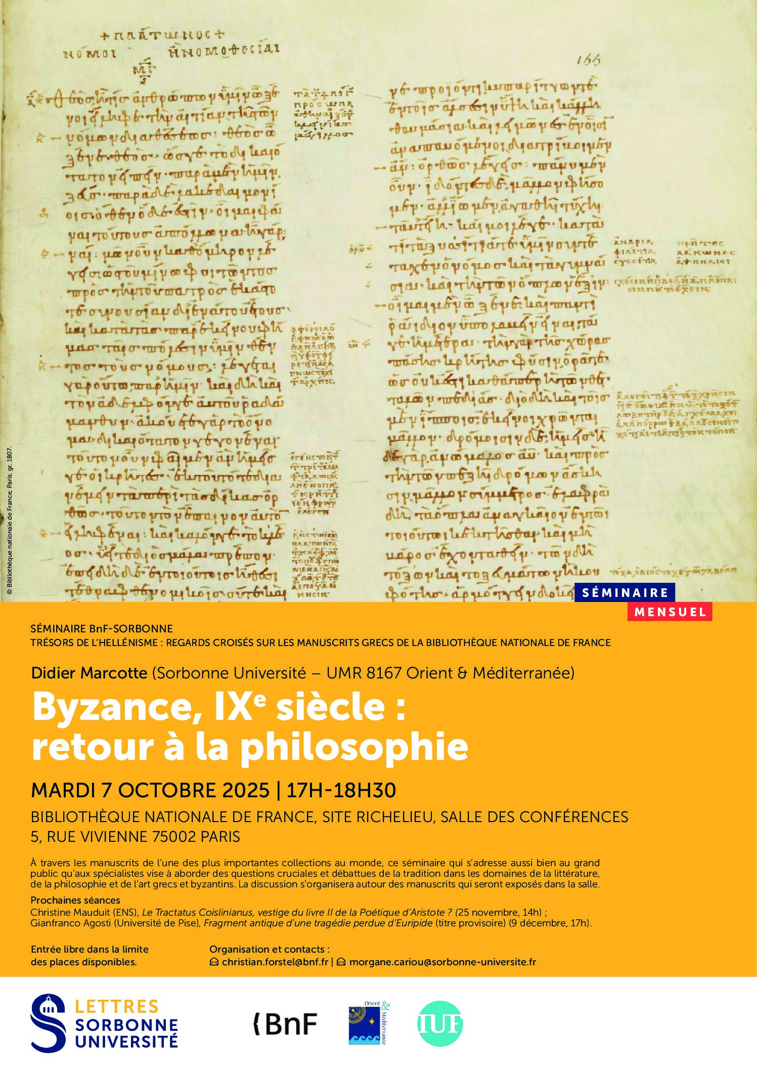 Orient & Méditerranée est une Unité Mixte de Recherche, UMR 8167 en Sciences historiques, philologiques et religieuses, associant le Centre National de la Recherche Scientifique, CNRS, Sorbonne Université, l’Université Paris 1 Panthéon-Sorbonne, l’École Pratique des Hautes Études et le Collège de France.