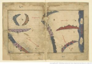 Carte tirée de la copie de la Bnf de la Géographie d’al-Idrisi représentant l’ouest du Sahara et figurant, en bas à droite de l’image, le site d’Azki/Quqdam, protégé par les lignes de falaises de l’Adrar (cliché BnF)