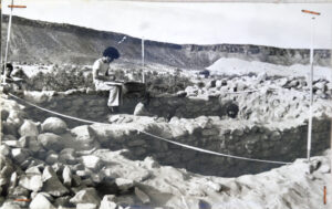 Cliché daté de 1981 des fouilles ouvertes par D. Robert-Chaleix et B. Saison, dans la zone de la qasba, au centre du tell archéologique (cliché D. Robert-Chaleix, archives IMRFPC)