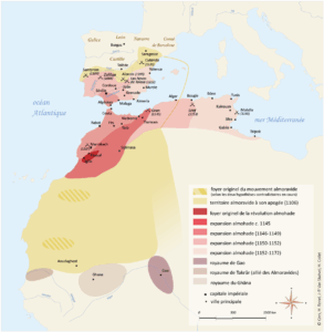 Carte des empires berbères soulignant la région d’Azougui comme l’un des berceaux du mouvement almoravide (image Atlas des Mondes Musulmans médiévaux)