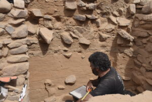 Une longue étude de faisabilité, conduite à Azougui et dans les institutions mauritaniennes entre 2019 et 2024 a permis de recueillir toutes les autorisations administratives et tous les accords de propriétaires nécessaires au lancement des fouilles archéologiques. C’est ainsi que la Mission Archéologique d’Azougui a lancé avec succès sa première campagne de terrain en janvier 2025 : cette première mission exploratoire a permis de réunir une équipe de travail opérationnelle, de nouer des relations de confiance avec les riverains, de définir des méthodes de fouilles adaptées à la pédologie sableuse extrêmement instable du site et enfin de certifier de la potentialité historique du gisement. Les travaux ont été conduits à peu de distance des premiers sondages réalisés en 1980-81 afin d’en préciser la portée scientifique et d’initier l’étude du monument aujourd’hui emblématique du village : sa « qasba ». Au regard de l’ampleur du gisement, et de la multiplicité des problématiques soulevées, l’objectif de la Mission d’Azougui est de développer l’étude du site sur a minima une décennie.