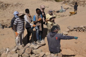 Accueil et formation d’étudiants mauritaniens au sein du chantier-école au cours de la campagne de 2025 (cliché MAAT)