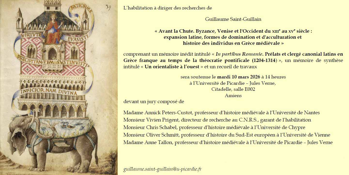 Intitulée « Avant la Chute. Byzance, Venise et l’Occident du XIIIe au XVe siècle : expansion latine, formes de domination et d’acculturation et histoire des individus en Grèce médiévale », elle comprend un mémoire inédit, « In partibus Romanie. Prélats et clergé colonial latins en Grèce franque au temps de la théocratie pontificale (1204-1314) » ; un mémoire de synthèse, « Un orientaliste à l’ouest » ; et un recueil de travaux.